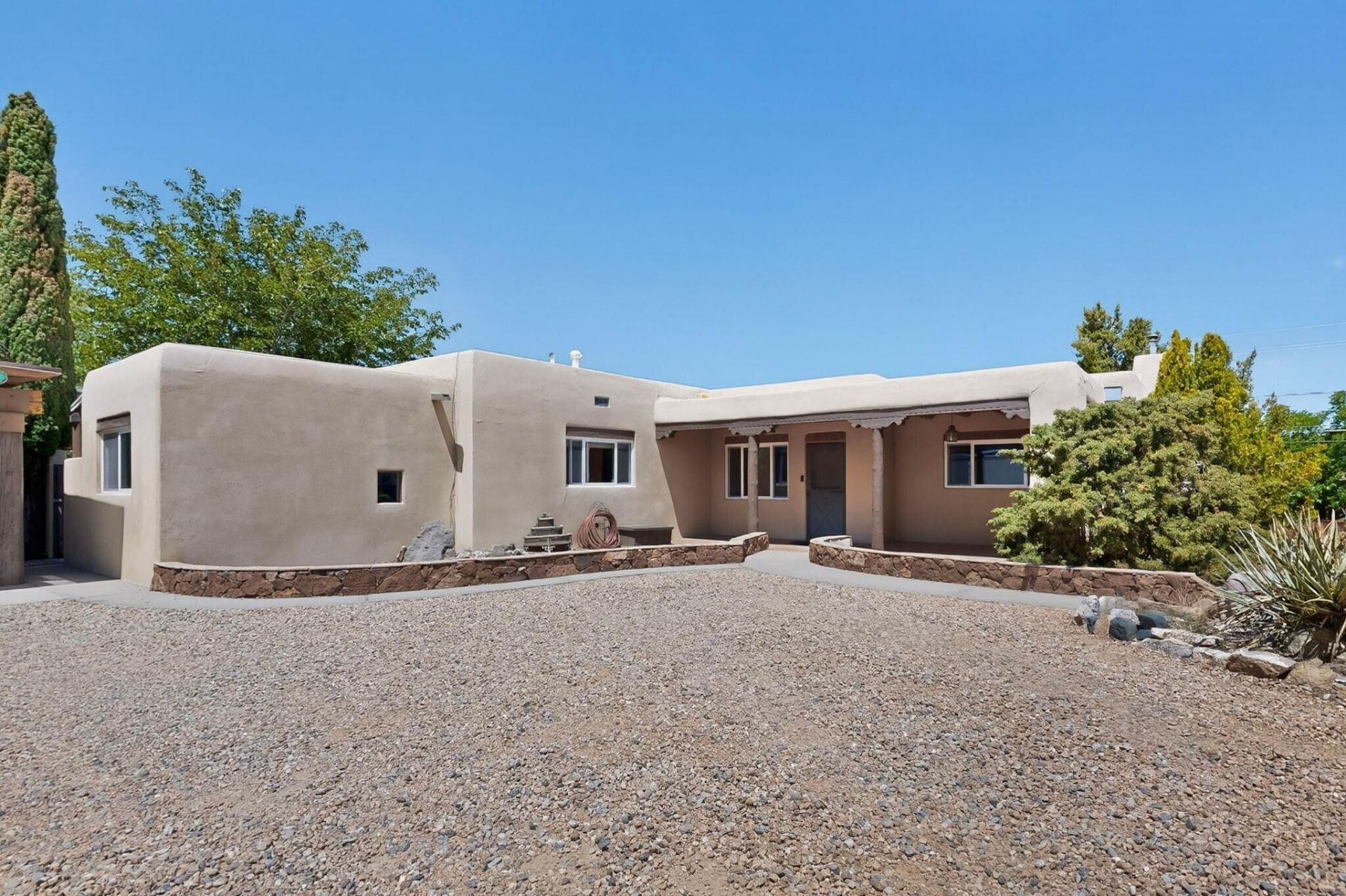 Full of charm and flexibility, this UNM South home on a double lot checks all the boxes! Oversized detached garage with a heated and cooled office or workshop space, attached double carport, and gated RV storage make this property as practical as it is inviting. Both bedrooms offer 3/4 baths, with one leading to a covered patio for easy indoor-outdoor living. The backyard is a standout with green grass, blooming beds, and a custom water feature. Beautiful tile, brick, and wood floors run throughout, and major upgrades were completed within the last 6 years. A great spot close to UNM, Nob Hill, and Kirtland AFB!