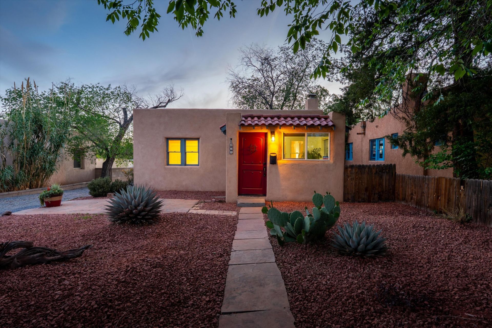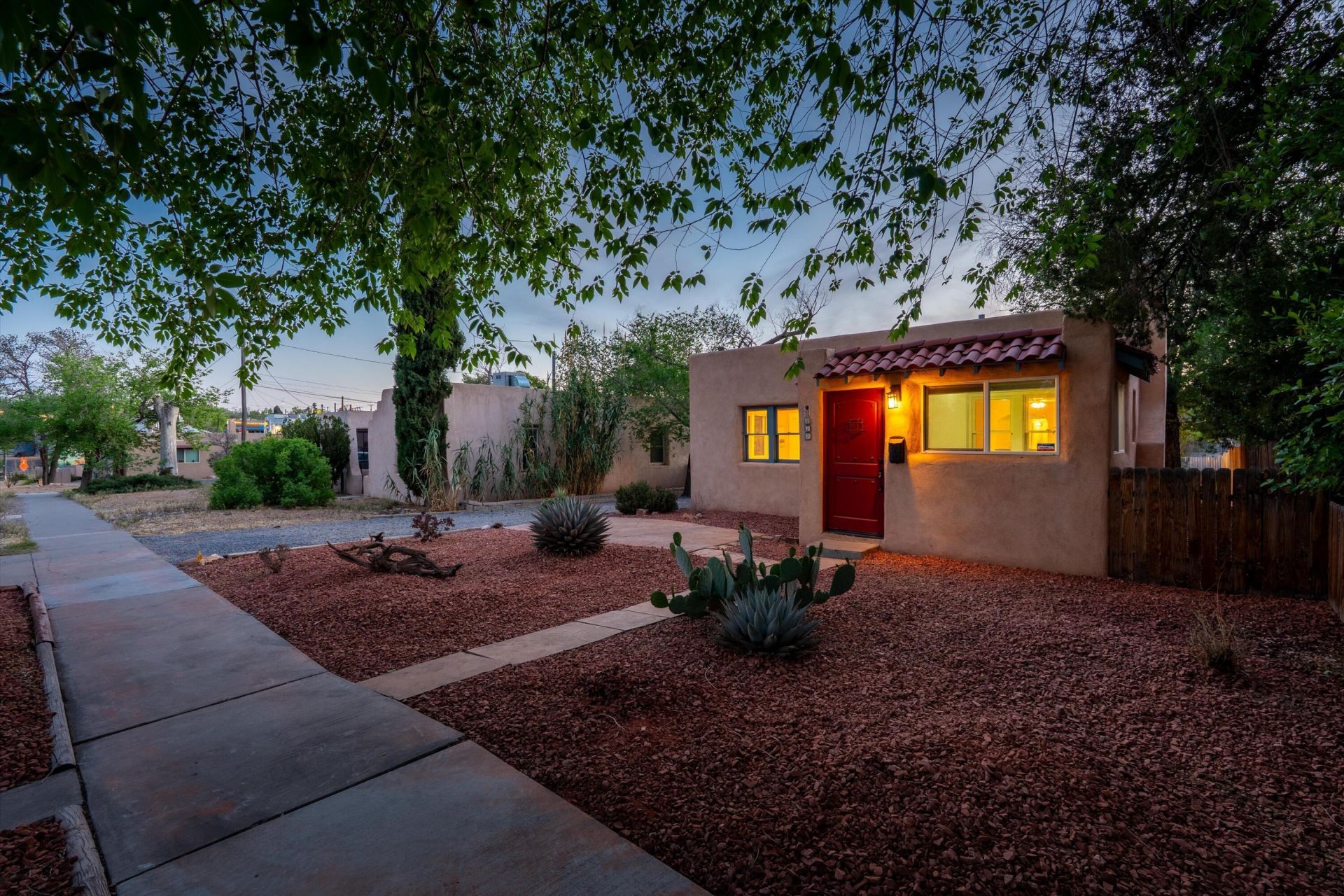 Charming Nob Hill bungalow with a detached casita in one of Albuquerque's most sought-after locations near Route 66. Built in 1938, this home blends classic character with thoughtful updates. Gorgeous wood floors run throughout the main living spaces, complemented by an updated kitchen featuring black granite countertops, stainless appliances, and ample cabinetry. The refreshed main bath offers timeless finishes, and the updates provide modern convenience. The primary bedroom includes a spacious walk-in closet/changing area, big enough to be an office or nursery, offering flexible use to suit a variety of needs. A separate studio casita provides versatile space for guests, rental potential, or a private workspace, complete with its own 3/4 bath. The backyard is a true retreat with multiple