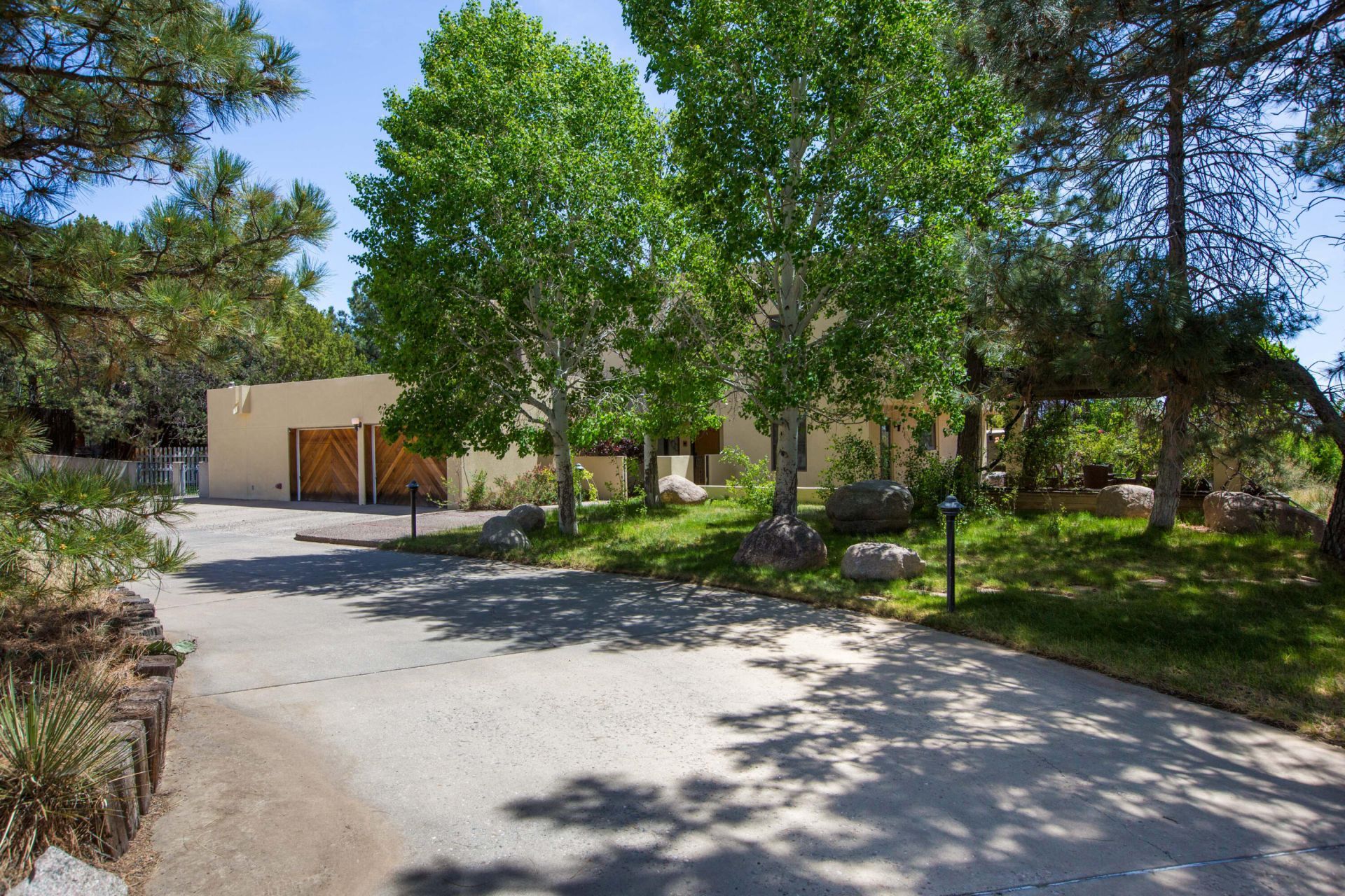 Located at the base of the Sandias, this updated contemporary home offers modern lines, flexible living & direct access to nature. Multiple generously sized living areas provide exceptional flexibility for multigenerational living, entertaining or working from home. Remodeled kitchen & baths bring a fresh modern feel, complemented by roof replaced in 2021 & refrigerated air. Situated on .83AC the property features multiple outdoor living spaces designed to take advantage of stunning city & mountain views, along w/peaceful water feature. A detached 190sf studio offers ideal space for hobbies, office or home gym, while the heated workshop off the garage & possible backyard access add even more versatility & function. A rare opportunity to enjoy space, comfort & the Sandia Heights lifestyle.